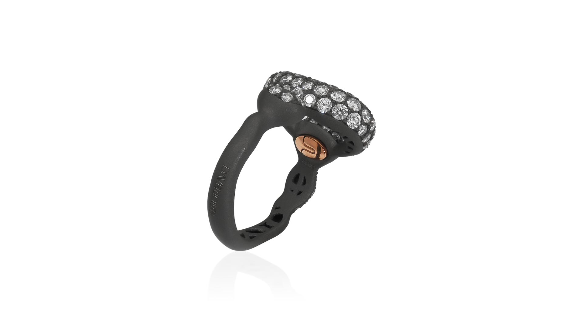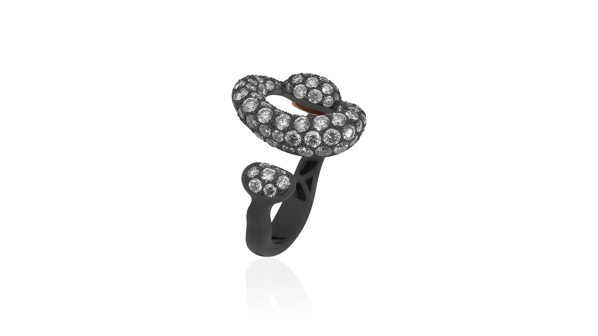 Anello Diamond Hug realizzato con pavè di brillanti proposto sia in oro che in titanio.